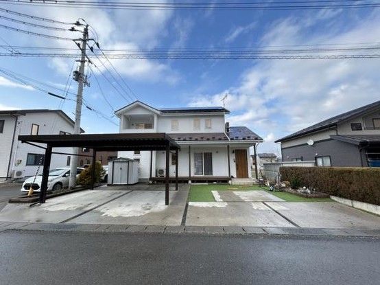 This detached house in Hanamaki, Iwate, offers a comfortable living space with a 3SLDK layout and a total floor area of 108.5 sqm. The property is situated on a generous 222.43 sqm plot of land. Built in April 2018, it is a relatively new construction at 9 years old and is a two-storey wooden structure. The property is currently vacant and a renovation is scheduled for April 2026, with the price including consumption tax and renovation costs. The house is suitable for two-family living.
