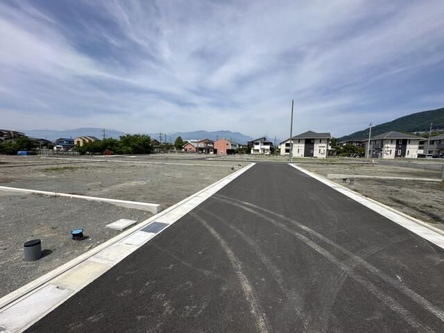 Important notes from the agent detail specific conditions and required procedures. The development permit number is Machi Shirei No. 786. Separate fees are required for water supply connection and beneficiary charges for sewerage. Part of this development area is located within the zone of a city planning facility (the Haguro-cho Shimokamijo Line road). Therefore, when constructing a building, a permit based on Article 53, Paragraph 1 of the City Planning Act is required. The development area includes a Kofu City road (width 5.0–6.0 m). There are legal restrictions based on the city's landscape ordinance, and some plots have utility poles and guy wires. The scheduled construction completion date for the development is May 2025.