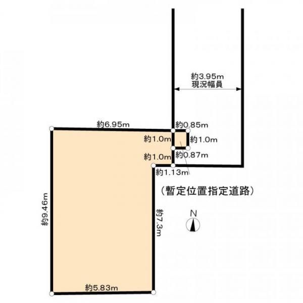 Critical details from the agent's notes regarding the road access situation are as follows: The property fronts a single road to the east, which is 3.9 meters wide. A portion of the land, 3.16 square meters, is private road. The property's frontage on this private road is 2 meters, and it has a designated location certification. There is no dedicated parking space included with the property. The current status of the building is vacant (akiya).