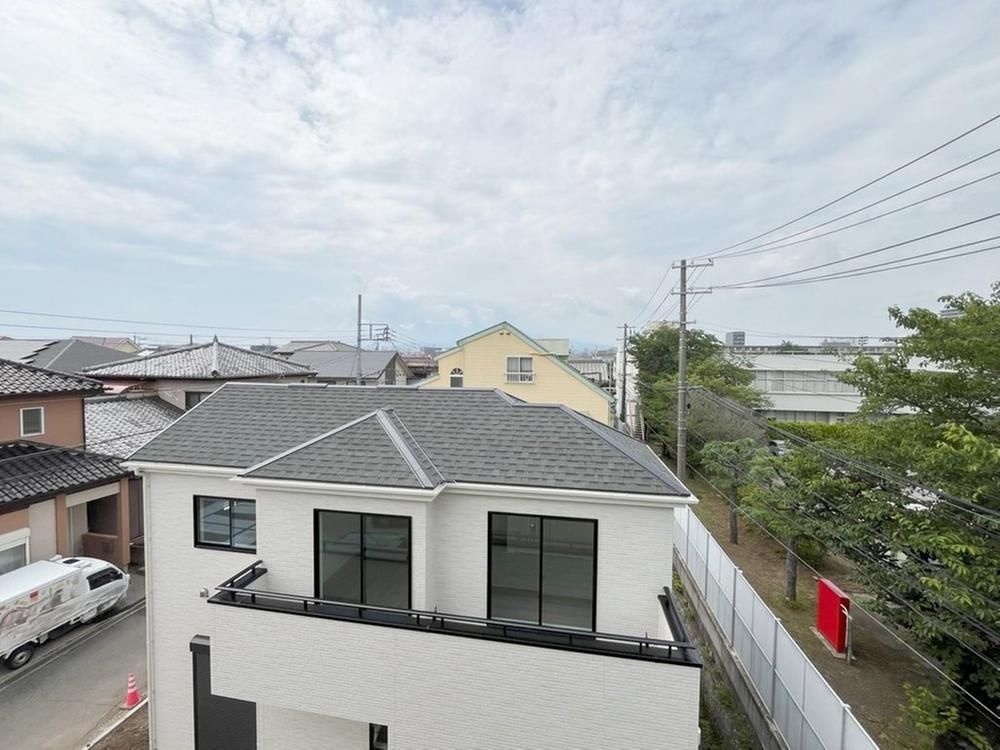 The property's features include parking space for a maximum of four cars, good access to National Route 1 and the train station, and a well-developed area with ample commercial facilities. The neighborhood is convenient for families, with a nursery school and elementary school nearby. A notable feature is that Mount Fuji is visible from the property. The house includes a system kitchen, an IH cooking heater, a shower-equipped vanity, two toilets, a south-facing balcony, a heated toilet seat, and a bathroom with a window. The living-dining-kitchen area is spacious, over 15 tatami mats in size. The property also includes a Japanese-style room, a garden, and a storage room. Utilities are connected to public water supply, public sewerage, and city gas.