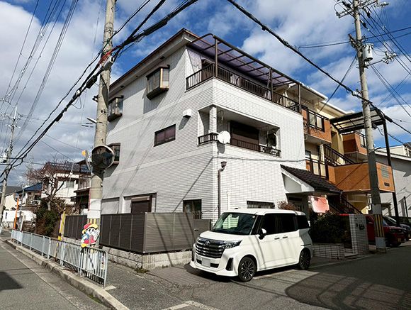 This property is a large, detached house located in Toyonaka City, Osaka Prefecture. It is a 7LDK layout, effectively configured as a two-generation residence with a 2LDK unit and a separate 5LDK unit, making it suitable for multi-generational living or those needing significant space. The total building area is a generous 188.73 square meters, situated on a 132.23 square meter corner plot. The house was built in November 1986, making it approximately 40 years old, and is constructed with a steel frame (鉄骨造). The property is currently vacant and ready for viewing.