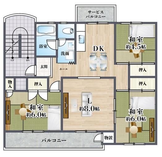 This spacious 3LDK apartment, located in Shimamoto Town, Osaka Prefecture, offers a comfortable living environment with the benefit of recent interior surface renovations. The property features a unique dual balcony layout on both the north and south sides, ensuring excellent sunlight and ventilation throughout the day. With a total floor area of 67.47 square meters (wall-core measurement), the apartment is situated on the 5th floor of a 5-story reinforced concrete (RC) building constructed in October 1972.
