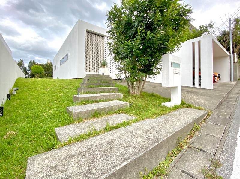 This property is a detached house for sale located in Nakadomari, Onna Village, Okinawa. The house features a 1LDK layout with an additional free room, offering spacious living areas. The building itself is constructed with reinforced concrete (RC structure), ensuring durability. A key feature highlighted by the agent is the adoption of wall-type storage that prioritizes both ample space and design aesthetics. The total building area, including the entrance and service yard, is 108 sqm (32.67 tsubo).