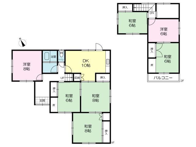 This property presents a rare opportunity to acquire a spacious 7DK detached house on a generous plot of land in Kamigori, Hyogo Prefecture. Priced at 4.5 million yen, this home offers approximately 111.32 square meters of living space across two floors, situated on a substantial 259.69 square meter plot. Built in February 1981, the house features a versatile layout with eight rooms, including a 10-tatami mat dining kitchen, multiple Japanese-style and Western-style rooms, providing ample space for a variety of living arrangements.