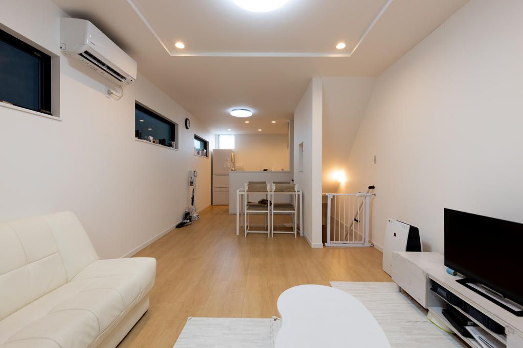 The home is equipped with a comprehensive range of modern features. The bathroom includes a drying function, useful for drying laundry on rainy days and for ventilating the room after bathing, making cleaning and maintenance easier. A system kitchen, integrating storage and workspace, is installed. The bath also features a reheating function, allowing the family to enjoy a warm bath at any time. Additional amenities include an electronic lock, a parcel delivery box, and a 24-hour ventilation system for daily comfort. The living-dining-kitchen area incorporates three-panel underfloor heating, ensuring the entire space stays warm and cozy during winter. A shoe-in closet keeps the entrance area tidy, and the presence of two toilets is a welcome feature for families. A 2.7-jo storage room on the third floor can serve as a walk-in closet, study, or versatile storage space. The property also includes a parking space capable of accommodating high-roof vehicles, providing peace of mind for car-owning households. The home combines comfort and practicality, designed to be a residence for the long term.