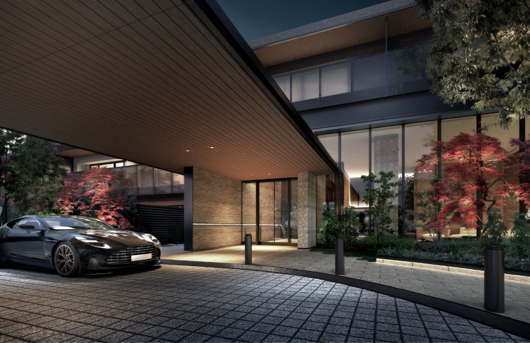 The development features a 100% parking provision rate, with units over 100 square meters on the first floor including an inner garage. The design incorporates a grand entrance with a large canopy and a landscape that weaves the imagery of lush greenery and the clear flow of the Nomegawa River into a stately facade. The property is also compliant with the Tokyo Metropolitan Barrier-Free Building Ordinance, making it easily usable by the elderly and persons with disabilities.
