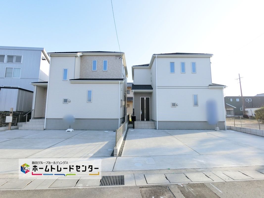 This listing presents two newly completed detached houses, designated as Building A and Building B, within the "Heartful Town" development in Gifu City. Both properties are move-in ready, offering a 4LDK layout with a total floor area of approximately 99.36 m² and 99.77 m² respectively. The houses are constructed with a wooden frame and siding exterior, featuring a two-story design.