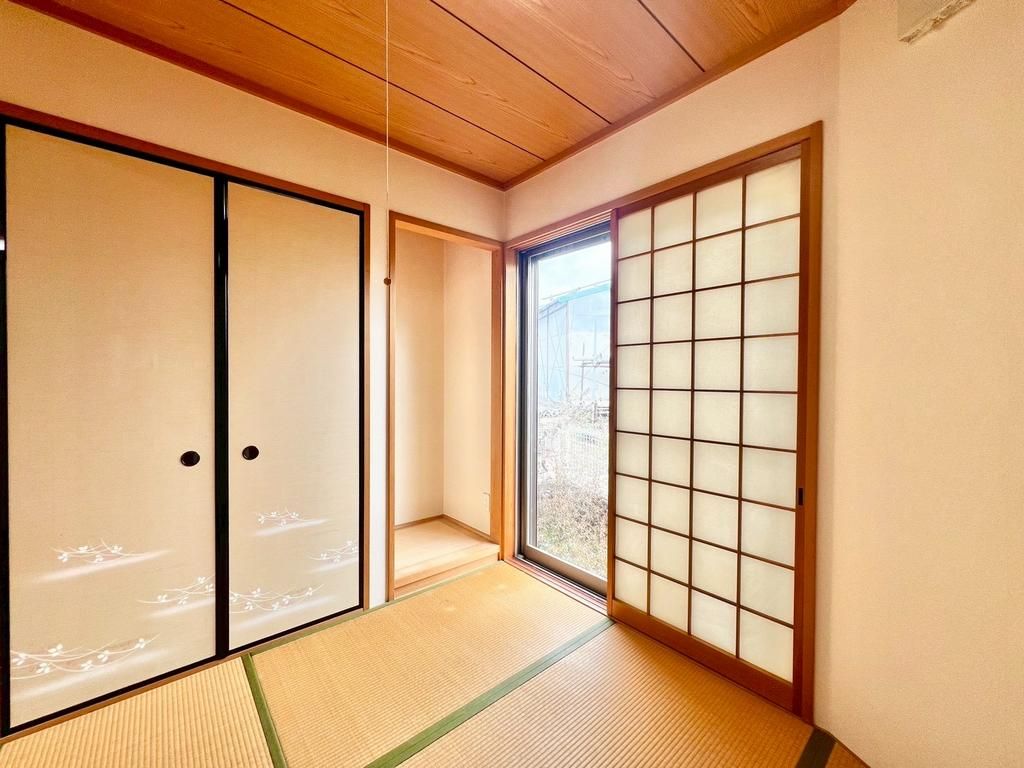 This move-in ready 4LDK detached house, built in 2008, offers a comfortable and functional living space perfect for a family. The property is currently vacant, allowing for flexible viewing schedules, including after work hours. The layout features a bright and airy living-dining-kitchen (LDK) area of approximately 12.18 tatami mats, designed as a relaxing central hub for the family. A key feature is the counter-style kitchen, which faces the living area, allowing you to engage with family while cooking.