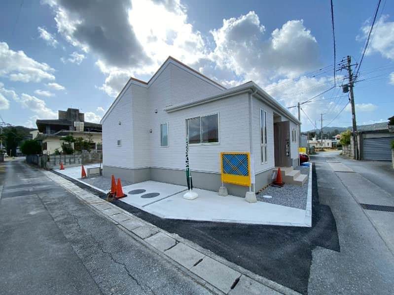 This newly constructed detached house, located in Afuso, Onna Village, Okinawa Prefecture, is available for immediate move-in. The property is a two-story wooden structure with a total floor area of approximately 93.57 square meters (about 28.3 tsubo) on a land plot of approximately 204.78 square meters (about 61.9 tsubo). The layout is a 3LDK configuration, comprising three Western-style rooms of 8, 6.5, and 5.25 tatami mats respectively, and a combined living-dining-kitchen area of 17.5 tatami mats.