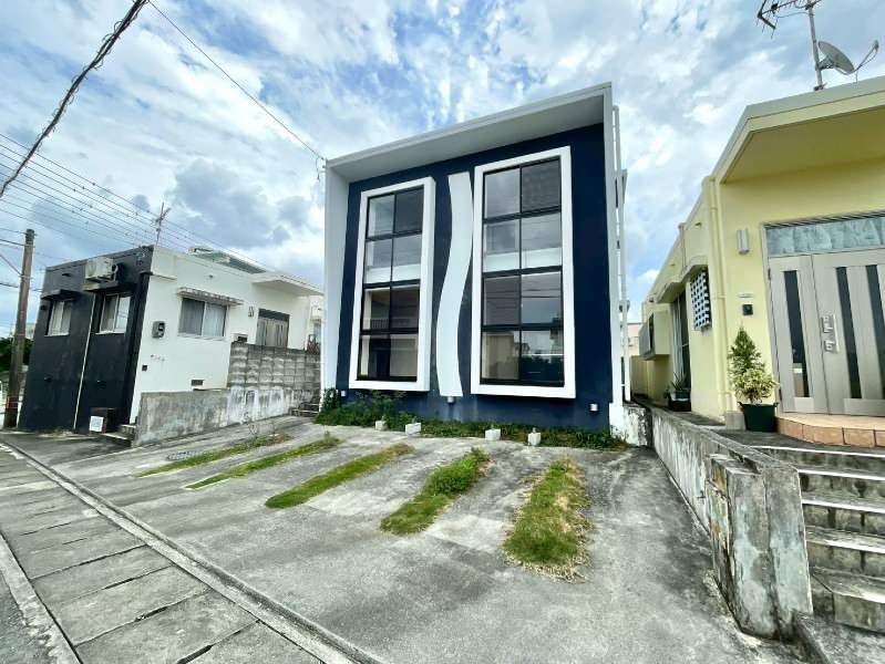 The location is quiet and offers a comfortable living environment. It is within a 5-minute walk to both Yomitan Elementary School and Yomitan Junior High School. The Takashibo Entrance bus stop is a 2-minute walk away, and the Tedako Urasue Station is approximately a 304-minute walk. Nearby amenities include a 7-Eleven convenience store (9-minute walk) and a Max Value supermarket (14-minute walk). The property includes parking for three vehicles.