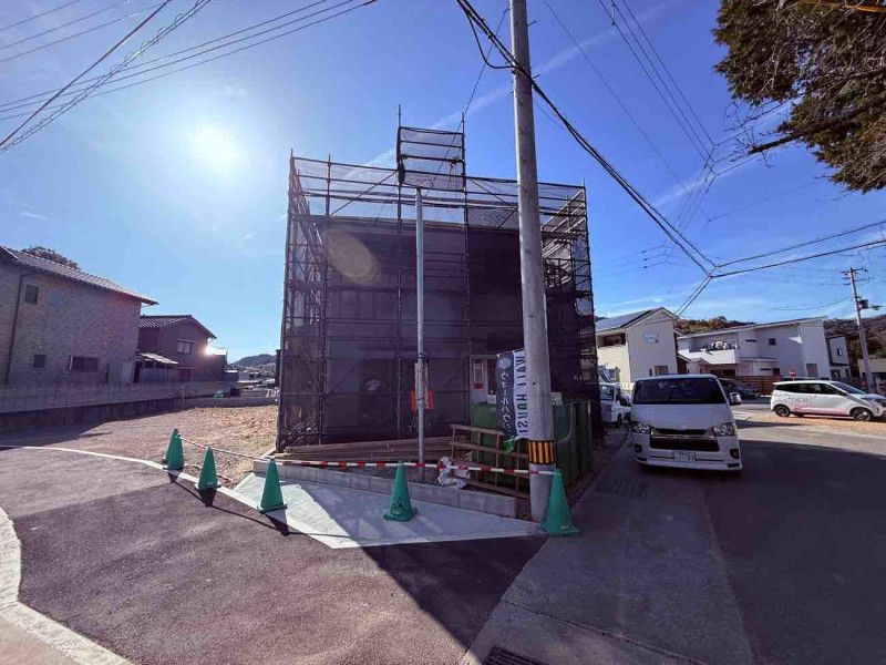 This newly built detached house is now available in Kagami-cho, Tokushima City. The property is a ready-built home, offering a secure purchase option and has obtained a performance indication certification. The house is situated in a quiet residential neighborhood and enjoys good sunlight.