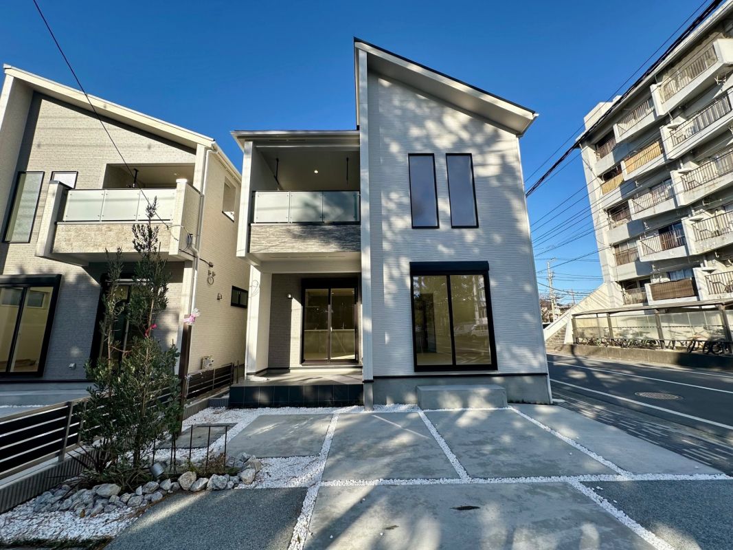 This exclusive two-unit development in Chigasaki's Hamasuka area presents a rare opportunity to acquire a newly built, high-specification detached home. The property, now completed and ready for immediate occupancy, consists of two distinct 4LDK houses, each designed with meticulous attention to detail in both interior and exterior aesthetics. Unit 1 is priced at 61.9 million yen with a building area of 104.74 square meters on a 144.02 square meter plot, while Unit 2 is offered at 62.9 million yen with a larger building area of 117.87 square meters on a 143.67 square meter plot.