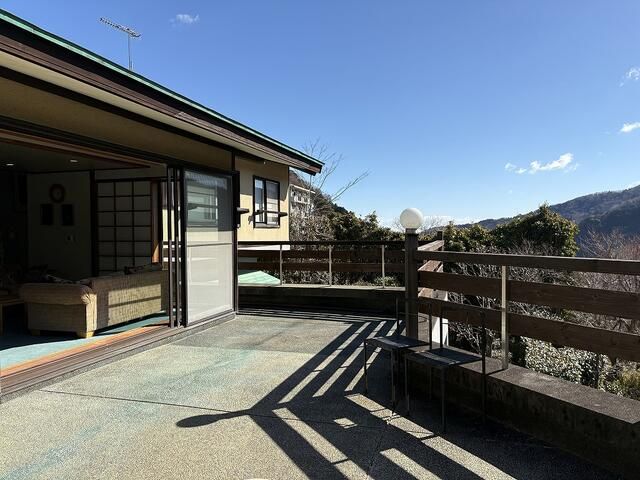 This unique property offers a private sanctuary where you can spend your days gazing at the sky and the green ridgelines. Originally constructed as a corporate retreat, this substantial home presents a rare opportunity. The property is located in the Miyakami area of Yugawara Town, Kanagawa Prefecture.