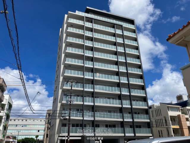 This property is a brand new, 11th-floor corner unit apartment in the Wise Stem Court Shintoshin Mekaru building, located in Naha City, Okinawa. The apartment features a spacious 2LDK layout with a total private area of 75.44m². The living, dining, and kitchen (LDK) area is notably large at 22.5 tatami mats and is finished with tile flooring, creating a distinct atmosphere different from standard wood flooring. The kitchen countertop uses Fiorestone material. The unit benefits from excellent views due to its high-floor corner position.