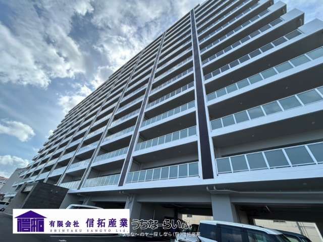 This property is a newly built, unoccupied apartment located on the 9th floor of a 14-story reinforced concrete building. The unit is a corner room offering a 3LDK layout with all Western-style rooms. The total private area is 65.53 m² (approximately 19.82 tsubo), and the balcony area is 23.12 m² (approximately 6.99 tsubo), with an additional sub-balcony of about 4.03 m². The apartment features an ocean view, providing a resort-like atmosphere with vistas of the blue sea and the landmark Camp Kinser.