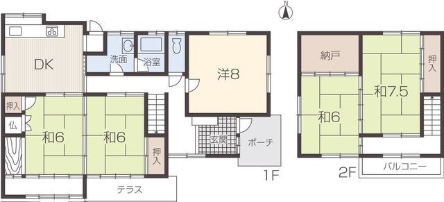 This charming two-story wooden house, built in August 1983, offers a generous living space of 118.70 square meters on a 148.80 square meter plot of land in the peaceful Taishi Town, Hyogo Prefecture. The property is currently vacant and ready for immediate handover. The layout is a versatile 5SDK, featuring a 6-tatami mat dining kitchen on the first floor, an 8-tatami mat Western-style room, and two 6-tatami mat Japanese-style rooms. The second floor includes a 7.5-tatami mat Japanese-style room, a 6-tatami mat Japanese-style room, and a 3-tatami mat storage space.