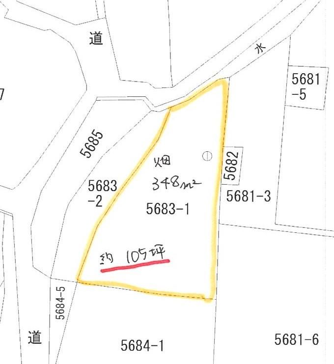 This listing presents a plot of agricultural land for sale in the peaceful rural setting of Oda, Yakage Town, within Okayama Prefecture. The property is categorized as farmland (畑) and spans a generous 348 square meters (approximately 105.27 tsubo). The land is designated as non-urbanization promotion area (非線引区域), with a building coverage ratio of 60% and a floor area ratio of 200%, indicating potential for development within agricultural zoning regulations. The current status of the land is vacant (更地), and transfer of ownership can be arranged immediately.
