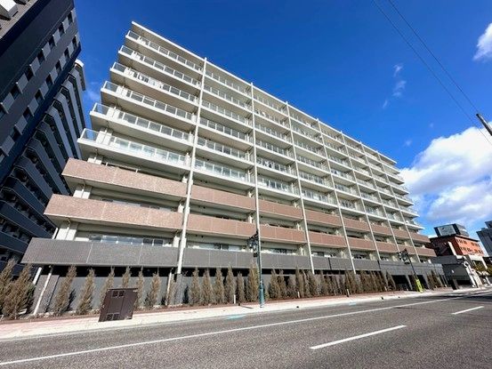 This property is a 4LDK apartment located in Koriyama City, Fukushima Prefecture. The building features a seismic isolation structure designed to reduce shaking during earthquakes. The south-facing balcony, approximately 1.8 meters deep, offers a park view overlooking Kaiseizan Park via Sakura Street.