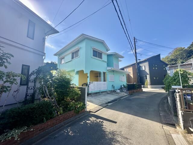 This property is a detached house for sale located in a quiet residential area of Yokosuka City, Kanagawa Prefecture. Built in March 1974, this two-story wooden structure offers a substantial living space of 113.83 sqm (approximately 34.43 tsubo) on a large, well-shaped plot of land measuring 206.08 sqm (approximately 62.33 tsubo). The layout is a 4LDK configuration, comprising one Japanese-style room of 8 tatami mats, and three Western-style rooms of 11, 6.5, and 6 tatami mats respectively. The property features a balcony and a garden with a wooden deck, with the main windows facing the southwest to maximize natural light.