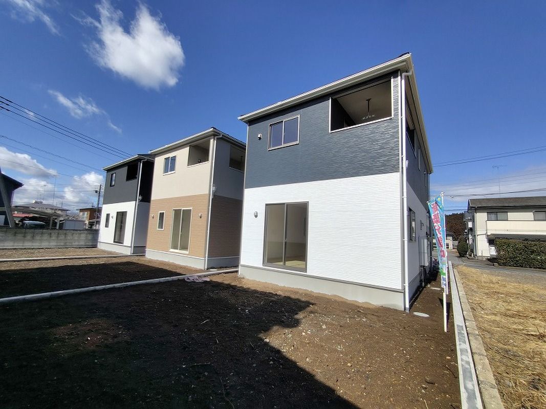 This newly completed detached house presents a spacious and well-equipped family home in Kanuma City, Tochigi Prefecture. The property is part of the Cradle Garden development, offering three similar units with slight variations in layout and price. The development features a wide frontage and substantial building size, creating an impressive presence.
