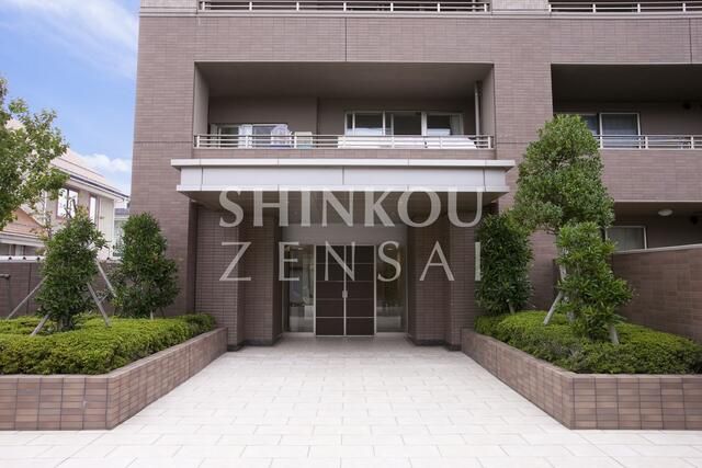 The property is exceptionally well-equipped. Facilities include underfloor heating, a road heater for the parking area, an IH cooking heater, hot water supply, an elevator, and a parcel delivery box. The bathroom features a washlet toilet with warm-water bidet function, a bath dryer, a re-heating function for the bathwater, an auto-fill bath, and a shampoo dresser. The kitchen is a system kitchen with a counter kitchen layout and includes a dishwasher. Additional features include double-glazed windows, a 24-hour ventilation system, a double floor structure, a terrace, and a private garden. For storage, there is a trunk room, underfloor storage, a walk-in closet, and other storage spaces. Security is comprehensive with an auto-lock system, a dimple key, an auto-lock with monitor, security cameras, and fire alarms. The building also has CATV and CS antenna connections with BS terminals, and a dedicated indoor space for a washing machine.