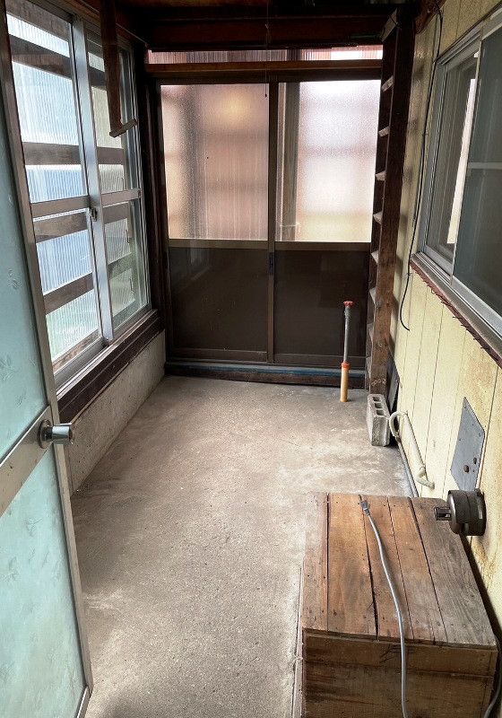 This property is an inherited traditional house located in the snow country of Akita Prefecture, specifically in Kitaakita City. The seller, who does not reside on-site, has entrusted local management. The location is a 10-minute walk from the Akita Nairiku Line's Aniai Station, with banks and small shops in the vicinity. The building is a two-story wooden structure accompanied by a 9.91㎡ storage shed and a single-story house built in 2004 (Heisei 16) measuring 19.87㎡. The layout is estimated to be 5LDK. The first floor comprises a living room, kitchen, two Japanese-style rooms, a washroom, and a bathroom. The second floor has two Japanese-style rooms and one Western-style room.