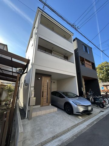 This contemporary three-story detached house, built in 2022, offers a bright and functional living space in Osaka's Ikuno Ward. The property features a 3SLDK layout with a total floor area of 111.78 square meters, providing ample room for family life. Key features include a system kitchen with a counter and dishwasher, double-glazed windows for insulation, and storage in every room. The home is equipped with city gas, a shower-equipped vanity, a bath dryer, and two toilets, one on the second floor. A sunny south-facing balcony on the third floor and a free parking space add to the convenience.