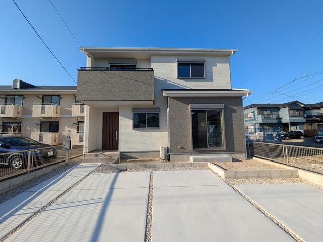 This newly constructed detached house, completed in August 2025, presents a modern and spacious 4LDK family home in a quiet residential neighborhood of Okazaki City, Aichi Prefecture. The property features a generous land size of 128.23 sqm and a total floor area of 104.35 sqm spread over two stories. The south-facing orientation ensures excellent sunlight throughout the day.