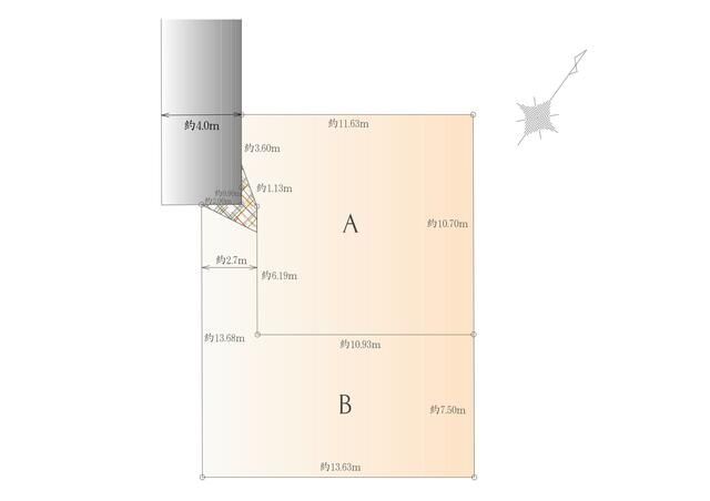 Equipment and utilities available include city gas, public water supply, sewerage, and electricity. The road frontage details specify a 4-meter wide private road on the northwest side, without a designated position. A portion of the land, 9.02 square meters, is private road area with a shared burden ratio of one-third. The terrain is sloped. The property is vacant land, suitable for residential construction, and is a re-buildable lot. The transaction method is general intermediary. The price is negotiable upon consultation.
