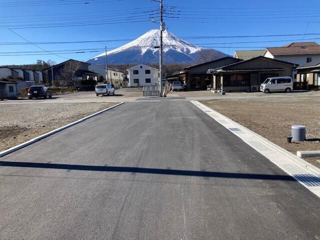The area of Oshino Village is renowned for its breathtaking natural beauty and its famous "Oshino Hakkai," eight spring-fed ponds with crystal-clear water filtered through volcanic rock from nearby Mount Fuji. This UNESCO World Heritage site component offers a serene and picturesque environment, making it a highly desirable location for a custom-built home. The property is approximately a 20-minute bus ride from the Fujikyuko Line's "Fujisan" station, followed by a 5-minute walk from the Shinkakubashi bus stop.