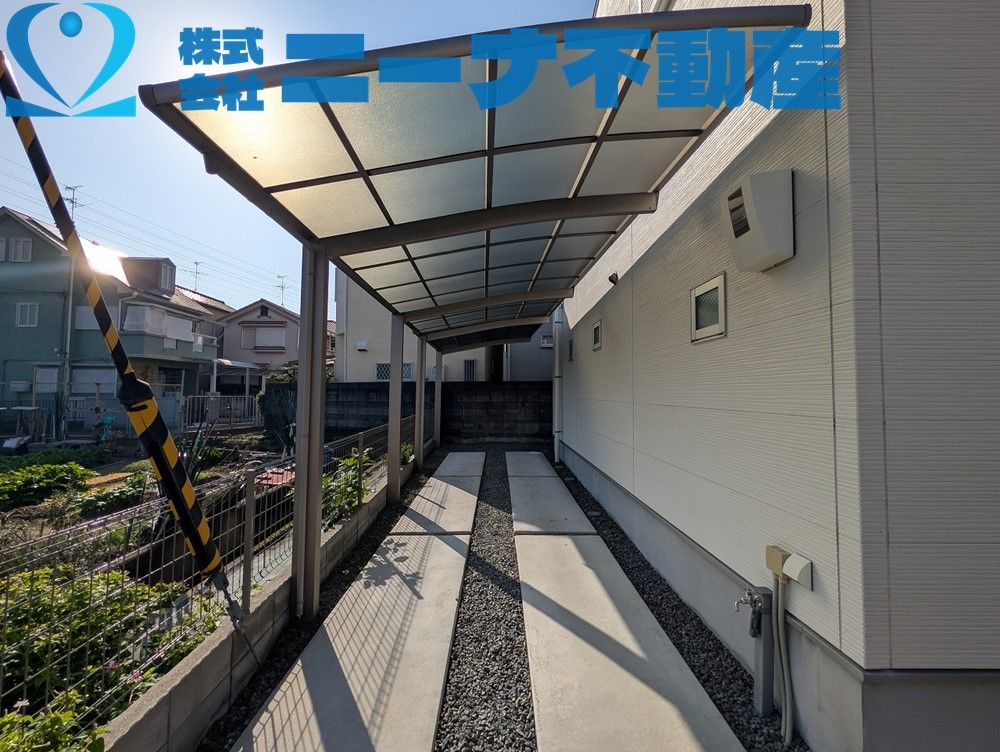 The home is well-equipped for modern living. The kitchen features a system kitchen with a counter, a dishwasher, and a recently exchanged hob. The bathroom is fitted with a bath dryer and heater, a reheating function for the bath, and is sized at over 1坪 (approx. 1.6m x 1.6m). The property is all-electric and includes amenities such as a TV monitor doorphone for security, underfloor heating, a walk-in closet, storage in all rooms, a shoe-in closet, an independent washroom, a balcony, and an indoor washing machine space. Two car parking spaces are available (subject to vehicle type). The living-dining-kitchen area is a spacious approximately 19-tatami mat room, providing ample space for family life.