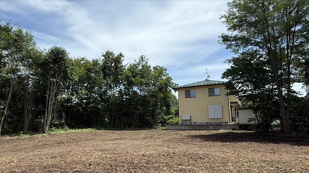 This expansive 1,707.65 square meter (approximately 516 tsubo) flat land parcel is situated in a quiet, wooded area of Miyota, just a 3-minute drive (about 1.3 km) from Miyota Station on the Shinano Railway Line. The property benefits from frontage on a roughly 9.7-meter wide asphalt-paved road on its southeast side, providing excellent visibility and access. From the northern part of the site, you can enjoy views of the iconic Mount Asama.