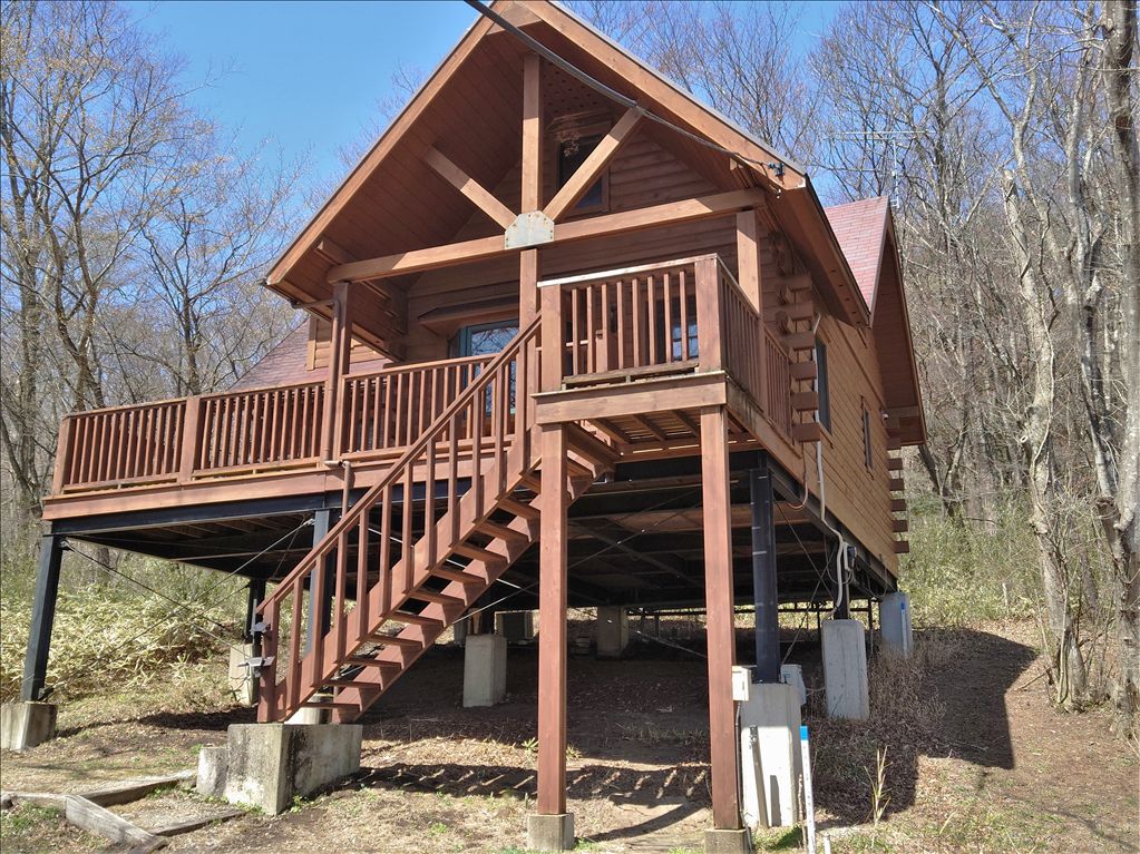 This machine-cut log cabin, located within the well-managed Nasu Highland villa area, offers two Western-style rooms and a sunny southeast-facing deck. The property is designated as a potential hot spring connection property, meaning hot spring water can be brought to the site. The villa owners have access to free services including a reservation-based shuttle bus.
