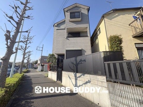 This detached house, built in 2003, offers a comfortable 3LDK layout across three floors with a total floor area of 97.8 square meters. The property sits on a flat 86.6 square meter plot in a quiet residential area of Higashi Teragata, Tama City, Tokyo. The main living spaces benefit from a southern orientation for good natural light.