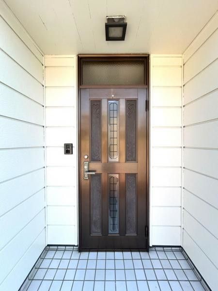 The property has undergone renovation, including exterior roof and wall painting, balcony parapet and handrail painting, and termite inspection and control work with a 5-year warranty. The interior has been cleaned, and the second-floor western 6-tatami Japanese-style room has been converted into a Western-style room. The LDK features an impressive atrium (吹き抜け). The kitchen is a system kitchen with a water purifier, and there is a separate entrance (勝手口).