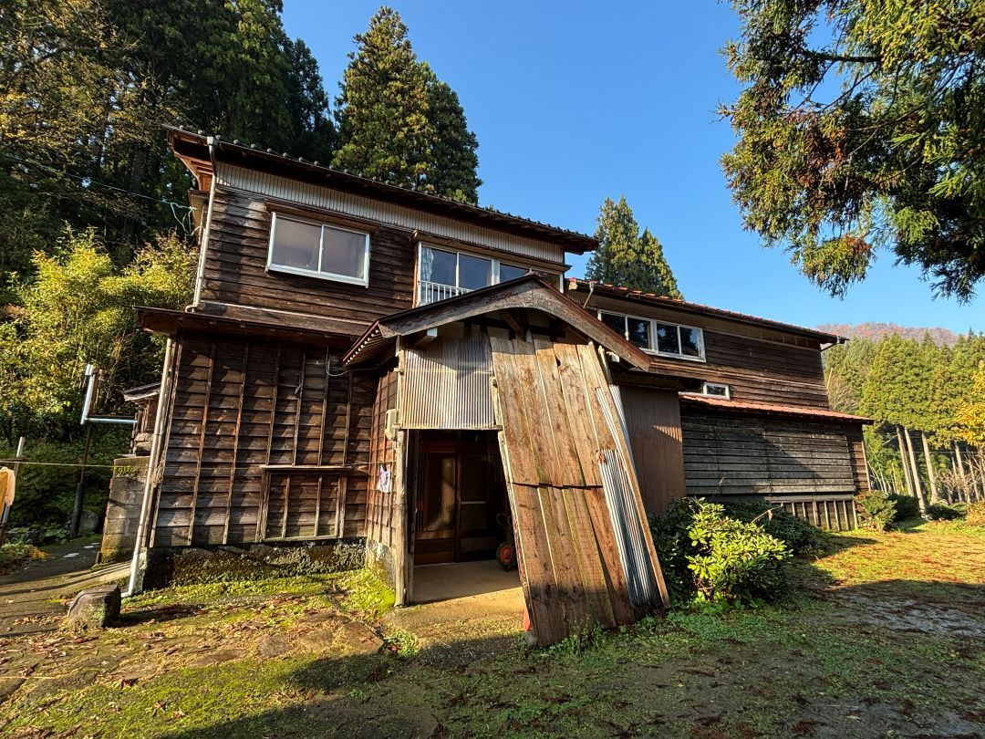 The property details are as follows: It is a two-story wooden structure built in January 1945 (Showa 20). The total land area is a generous 432.60 square meters, with a total floor area of 176.02 square meters. The layout is an 8K configuration, indicating eight rooms plus a kitchen. The property includes a parking space for three vehicles and an attached storage shed. The house became vacant around January 2016 (Heisei 28). Some minor repairs are required, and the cost of these repairs will be the responsibility of the occupant. Utilities are ready: electricity is connected, the bath is a wood-fired bath (currently under confirmation), and gas is LP. The toilet is a flush type. Water is supplied from a mountain spring, and the sewerage is connected to the public system. TV reception is available, and mobile coverage from major carriers (docomo, au, SoftBank) is confirmed. The property is within the school districts for Nakano Elementary School and No Middle School. Nearby facilities include a supermarket approximately 6.1 km away, a convenience store about 5.4 km away, and a general hospital roughly 17.4 km away.