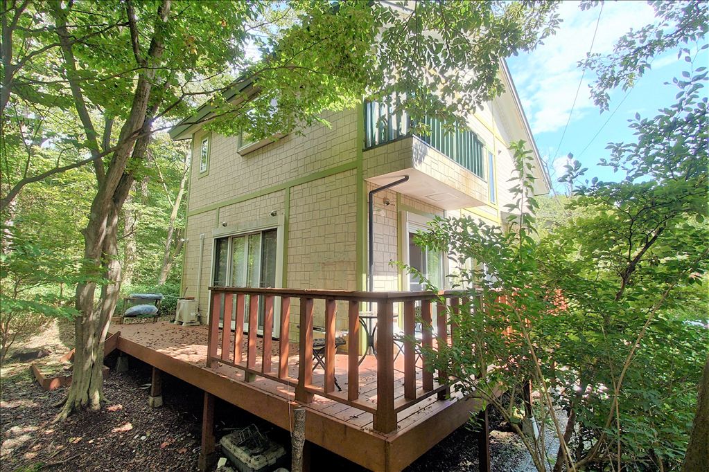 This detached vacation home is situated within the vast, approximately 2.6 million square meter Nasu Heisei-go villa area, offering a serene retreat in a nature-rich, flat plot of land. The property features a two-story wooden structure built in August 2006, providing a 3LDK layout plus a versatile free space, a storage room, and attic storage. A standout feature is the L-shaped wooden deck that offers peaceful views of the surrounding woodland.