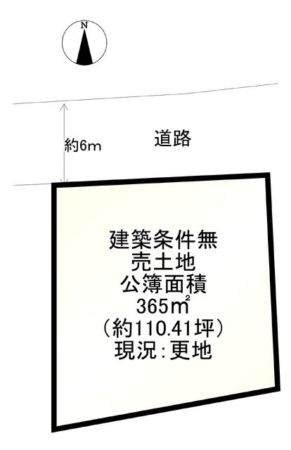 This vacant land plot, located in the Kuwanishiyama area of Katanabe City, Kyoto Prefecture, presents an excellent opportunity to build your custom home in a green and tranquil residential neighborhood. The property is a sizable 365 square meters (approximately 110.41 tsubo) of flat land designated for residential use within a First Category Residential Zone. The plot features a 17-meter frontage on a 6.5-meter wide road to the north, with no setback requirements.