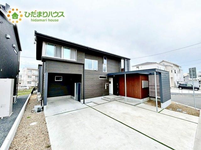 The property is situated on a developed, clean plot of land and is a corner lot with road access on two sides: a 6.3-meter-wide road to the north and a 6.3-meter-wide road to the west. The building has a south-facing orientation, ensuring good sunlight exposure. The living-dining-kitchen (LDK) area is over 20 tatami mats in size, providing an open and spacious feel. The living room features large windows that let in plenty of natural light. The kitchen is a face-to-face type, allowing for conversation with family while cooking. Additional features include a pantry, a walk-in closet, a shoe-in closet, a TV monitor intercom, flooring in all rooms, an IH cooking heater, a dishwasher/dryer, a staircase integrated with the living room, city gas, and all-electric system. The bathroom is spacious at over 1 tsubo, and there are two toilets. The property also includes a balcony, a garden, and parking space for three or more cars.