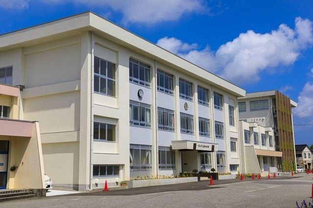 This 2LDK apartment, located on the 3rd floor of a 7-story reinforced concrete building, offers a comfortable and practical living space in Toyama City. The east-facing unit features a generously sized living-dining-kitchen area of approximately 19.1 tatami mats, providing ample room for family gatherings without feeling cramped. The layout includes a Western-style room (6.1 tatami mats) and a Japanese-style room (5.8 tatami mats), offering flexible use of space. The property boasts a 16 sqm balcony and a family closet for storing clothes and suitcases.