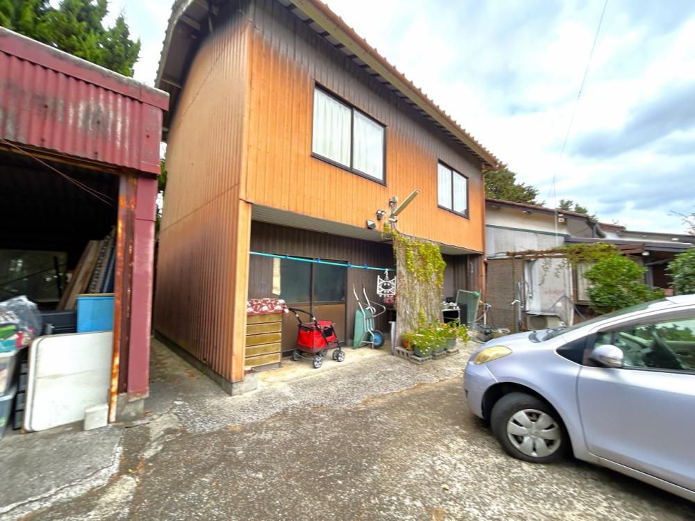 Additional structures include an unregistered two-story steel warehouse (approx. 26 sqm) and an unregistered steel carport (approx. 10 sqm). The property offers parking for up to four vehicles, including one in the carport. The south-facing engawa (veranda) provides a perfect spot for relaxing in the sun. The location offers convenient car access, with National Route 213 approximately 2,100 meters (a 5-minute drive) away. The area is known for its peaceful, rural scenery of spreading rice fields.