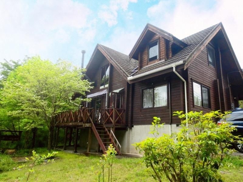 This unique property, listed as Property [291], is a charming log cabin home nestled within the greenery of Motegi Town, Tochigi Prefecture. Built in March 1994, this 31-year-old wooden structure offers a distinctive living experience with 121.24 square meters of building area spread over two storeys, situated on a spacious 370.17 square meter corner plot. The layout is a comfortable 3LDK, providing three bedrooms, a living room, dining room, and kitchen.