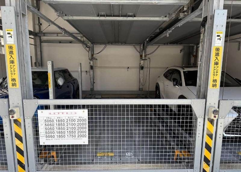 The property is equipped with a comprehensive range of modern amenities for comfortable living. These include a system kitchen, water purifier, dishwasher, bathroom dryer, heated toilet seat, separate washbasin, air conditioning, ample storage space, BS/CS satellite broadcasting, an auto-lock security system, surveillance cameras, a monitor-equipped intercom, a parcel delivery box, and an elevator. The building features a mechanical parking space (max dimensions: length 5050mm, width 1850mm, height 2100mm) available for a monthly fee of 15,000 yen. Monthly fees include 9,000 yen for management and 5,900 yen for repair reserve fund.