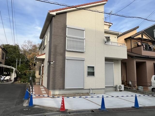This well-maintained detached house, built in September 2012, offers a generous 4LDK layout perfect for family living. The property is situated on a corner lot, providing ample space for two cars to park comfortably. The floor plan is thoughtfully designed, featuring a Japanese-style tatami room on the first floor alongside other living spaces. The south-facing windows ensure the home is filled with natural light.