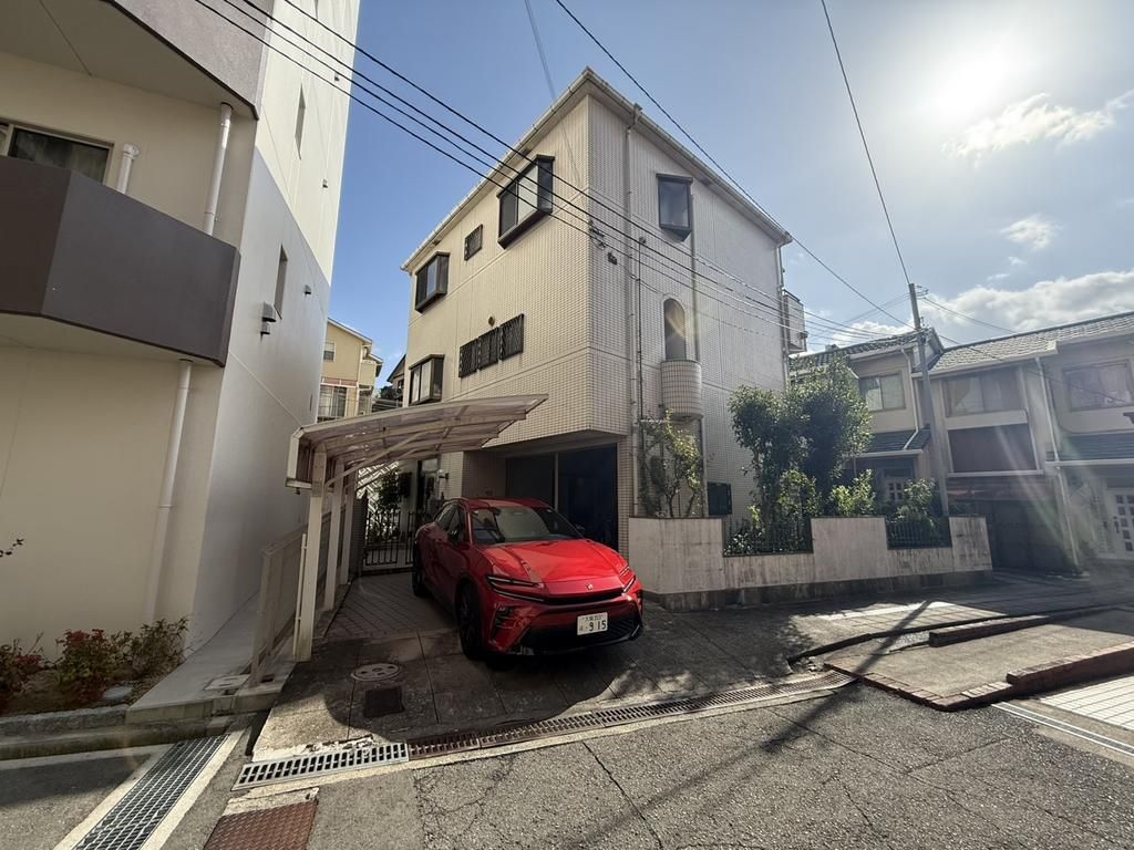This property is a substantial 6LDK detached house located in the Tonoyama 6-chome area of Toyonaka City, Osaka Prefecture. The home features a unique hybrid construction: the first floor is built with reinforced concrete, while the second and third floors are wooden, offering a solid foundation. With a total floor area of 168.67 square meters, the layout is spacious and versatile.