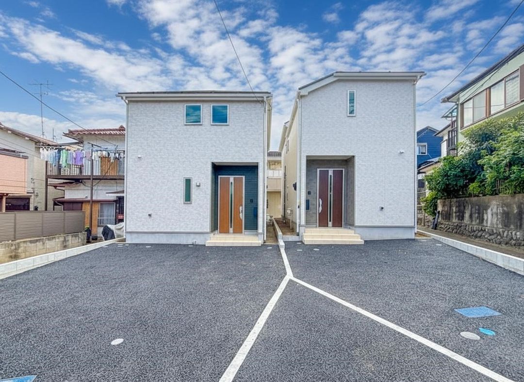 This newly built two-story house, designated as Building No. 1 in a two-unit development, offers a comfortable and well-equipped living space in a quiet residential area of Yokohama's Asahi Ward. The property features a 3LDK layout with a building area of 99.62 square meters on a 112.82 square meter plot of land. The bright living-dining-kitchen (LDK) area spans over 15 tatami mats, featuring soft-toned flooring and white walls that create a calming and spacious atmosphere for family gatherings.