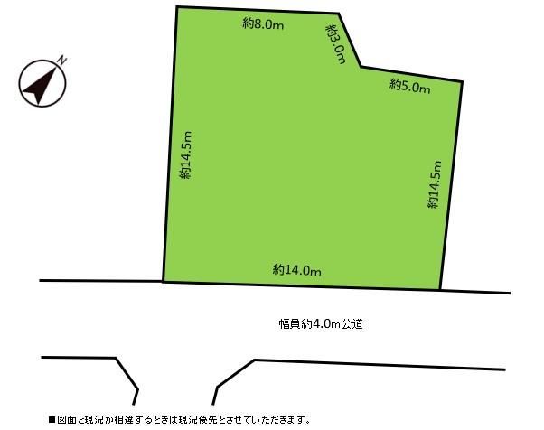 According to the agent's notes, the property is in a "更地" (vacant/cleared land) condition and is available for immediate handover. There are no specific building conditions attached to the sale. The land has road frontage on one side (southeast) with a width of 4 meters and a private road frontage of 14 meters. Essential utilities are already in place, including city gas, electricity, and a sewer system. The transaction is handled as a "専任媒介" (exclusive agency).