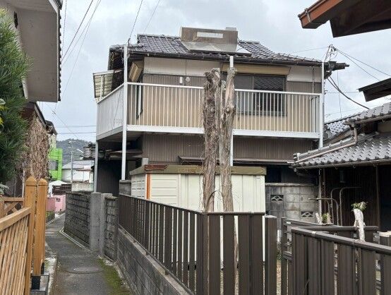 This property is a unique two-story wooden house built in 1952, offering a spacious 100.56㎡ floor plan with a 5DK layout. It is situated on a 95.89㎡ plot of land in Fukugawa 3-chome, Shunan City. The home features a charming retro aesthetic with classic wooden fittings and doors. Key amenities include water supply, public gas, city gas, sewer drainage, a kitchen gas system, and parking space availability. A critical note from the agent's remarks is that the property is not connected to a road as defined by the Building Standards Act, which is an essential detail for potential buyers to consider.