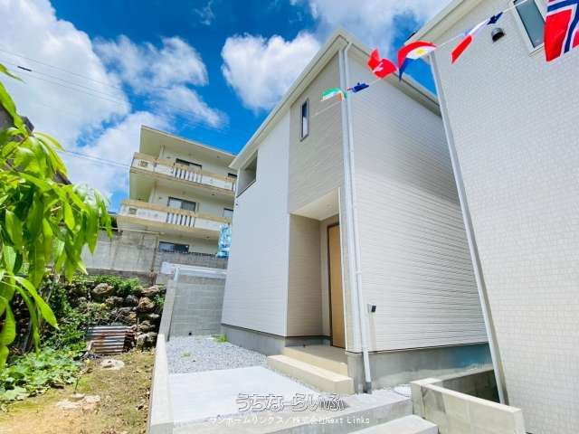 This newly constructed, two-story wooden house, completed in April 2025, offers a spacious and modern living environment in the peaceful residential neighborhood of Inamine, Nanjo City, Okinawa. The property features a generous 4LDK layout, comprising four bedrooms including a Japanese-style room, a large living-dining-kitchen area spanning 16 jo, and a roof balcony. With a total floor area of 98.82 sqm (29.89 tsubo) on a land plot of 123.47 sqm (37.34 tsubo), it provides ample space for family life. The home comes with two tandem parking spaces and is equipped with high-quality facilities including a system kitchen with a counter, separate bath and toilet areas (with two toilets), a standalone washroom, a bath with reheating function and dryer, heated toilet seats, an intercom with TV monitor, underfloor storage, and storage in all rooms. A key facility note is the inclusion of an indoor washing machine space.