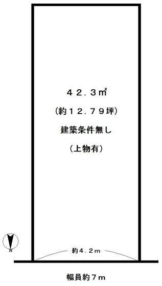 The plot is in a First Category Residential Zone with a building-to-land ratio of 60% and a floor area ratio of 200%. There are no specific building conditions attached to the sale, offering flexibility for the future owner's construction plans. The land fronts a 7-meter wide public road to the north with a frontage of approximately 4.2 meters. A notable feature is the sense of openness, as the front and rear of the plot are adjacent to parking areas.